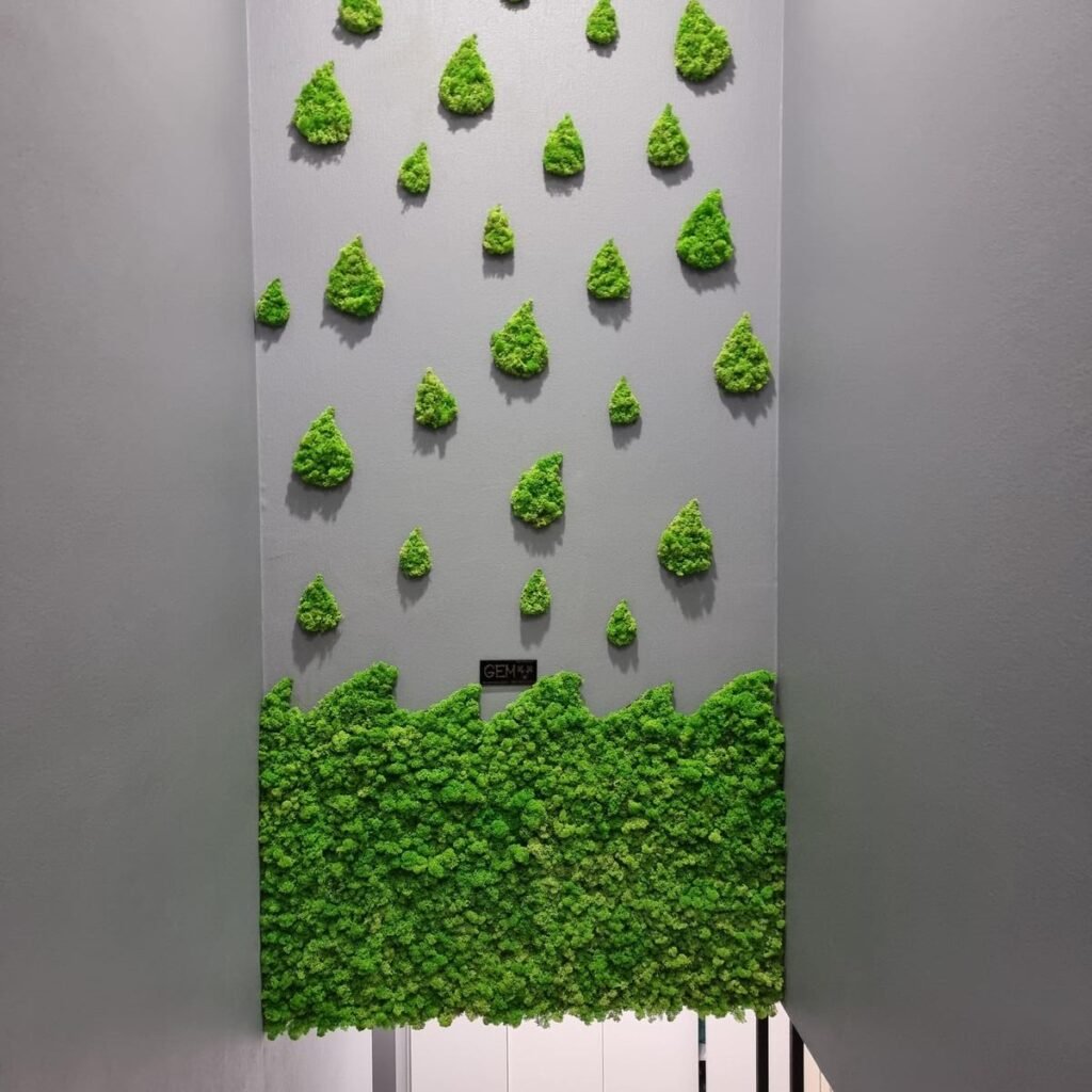 Розробляємо індивідуальну концепцію, виготовляємо виріб зі стабілізованого моху та рослин і здійснюємо професійний монтаж на об’єкті.