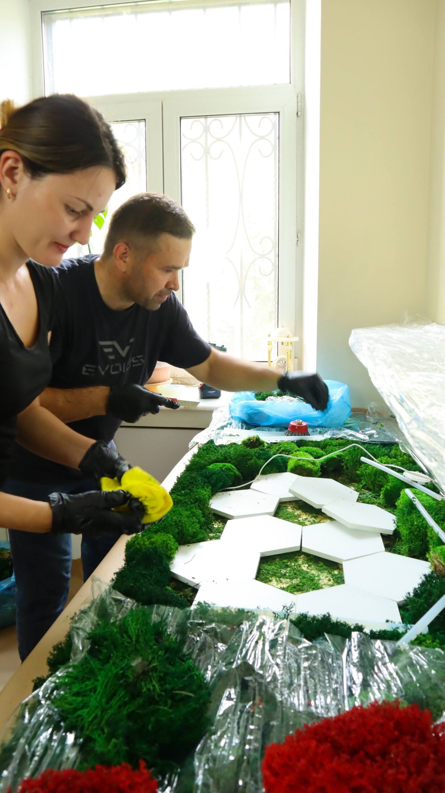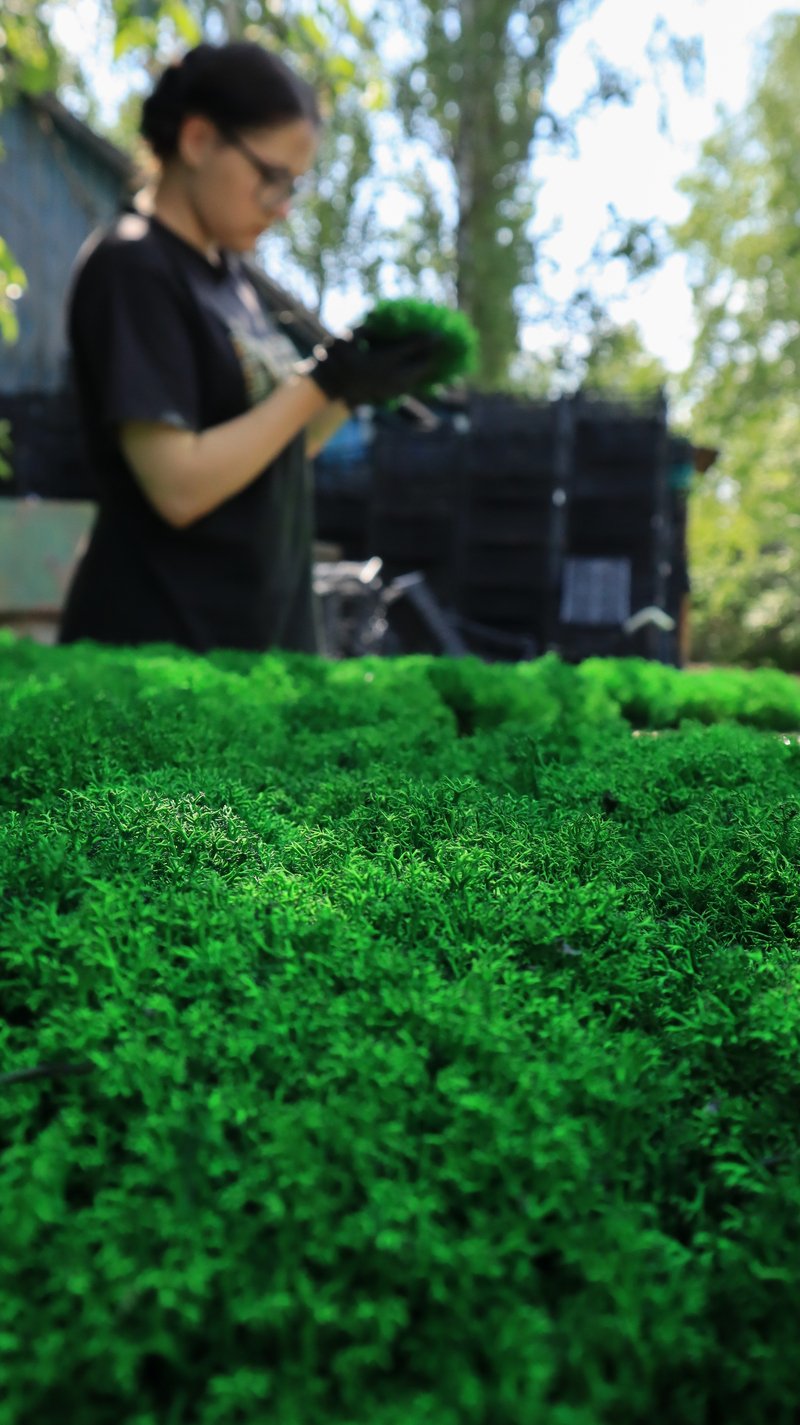 Ми пишаємося нашим виробництвом, розташованим у місті Коростень, де на площі понад 500 м² щотижня створюються десятки квадратних метрів зелених панно зі стабілізованих матеріалів. Завдяки професійній організації процесів, постійному запасу моху різних кольорів і видів, а також окремій лінії з обробки та фарбування рослин, ми забезпечуємо високу швидкість та гнучкість виконання проєктів будь-якої складності.